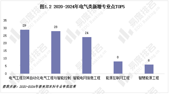 电气类专业的新增并非只正在保守标的目的上的数量叠加,进一步向智能化、互联化标的目的扶植。保守电气工程及其从动化新增专业点数量最多,电气工程取智能节制、智能电网消息工程是电气取计较机、节制手艺深度融合的典型代表,别离新增28、24个专业点。