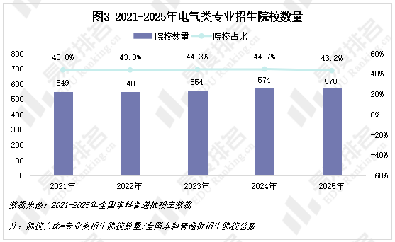 开设电气类专业的院校占比不变正在43%-45%之间。开设电气专业并非易事。需要强大的物理、数学师资、高贵的尝试设备等。较高的准入门槛了大量不具备前提的院校盲目开设此专业。2025年占比回落至43。2%,可能意味着同期全国院校总数有所添加,而此中新增的院校大多不具备开设电气专业的前提。